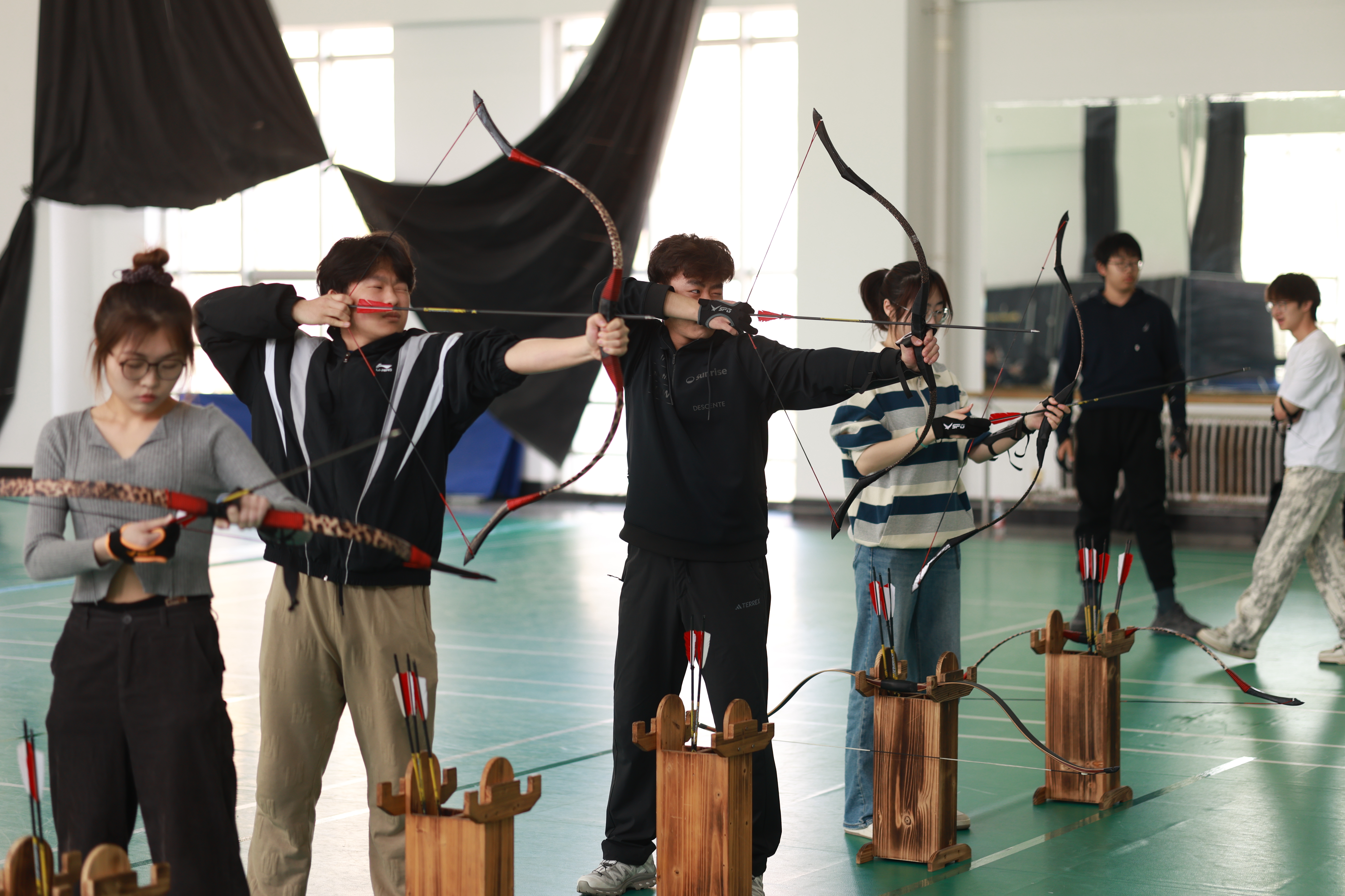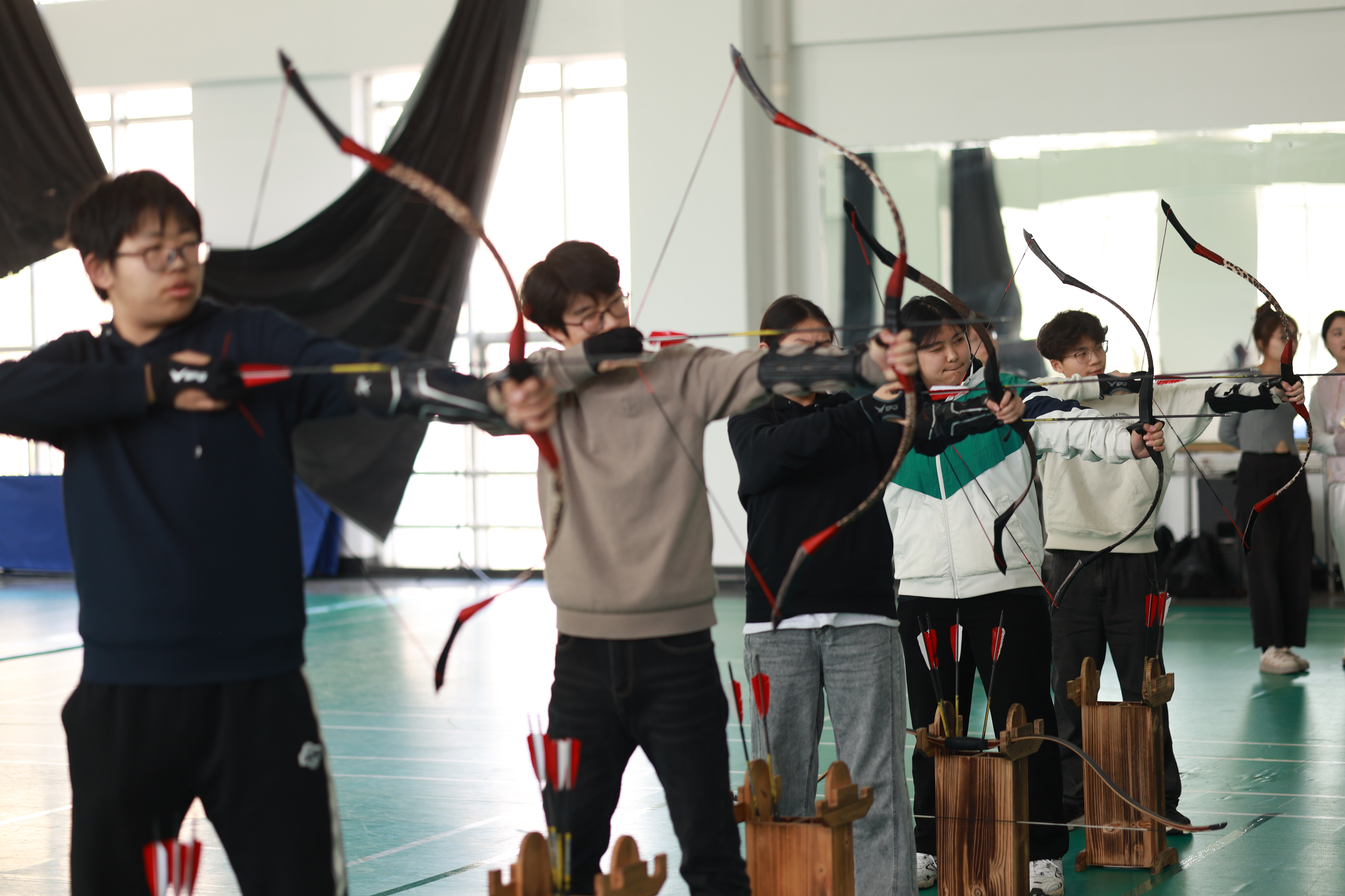 4月19日,大连交通大学首届“云翎杯”射艺大赛在一期软件楼二楼射箭场火热开赛。作为拥有逾两百名成员的活跃社团,本次活动不仅展现了成员的热情,更体现了集体的凝聚力。大赛吸引了60余名选手同场竞技,更有百余名师生及射艺爱好者到场观赛助威,我校部分学院相关负责人到现场参加观摩活动。现场气氛热烈,传统射艺与现代竞技的碰撞点燃全场激情。
